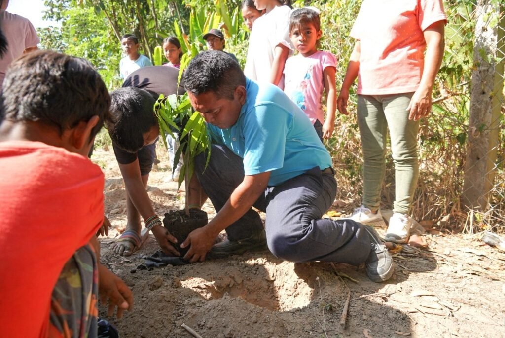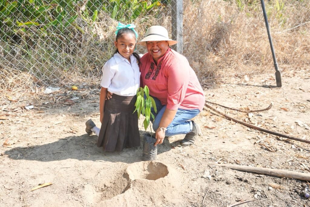 El Gobierno Municipal de Mazatán, que preside la C.Sarita Barrera, a través de la Dirección de Fomento Agropecuario, llevó a cabo la reforestación con árboles frutales y ornamentales en la Escuela Primaria “Rosario Castellanos Figueroa”.