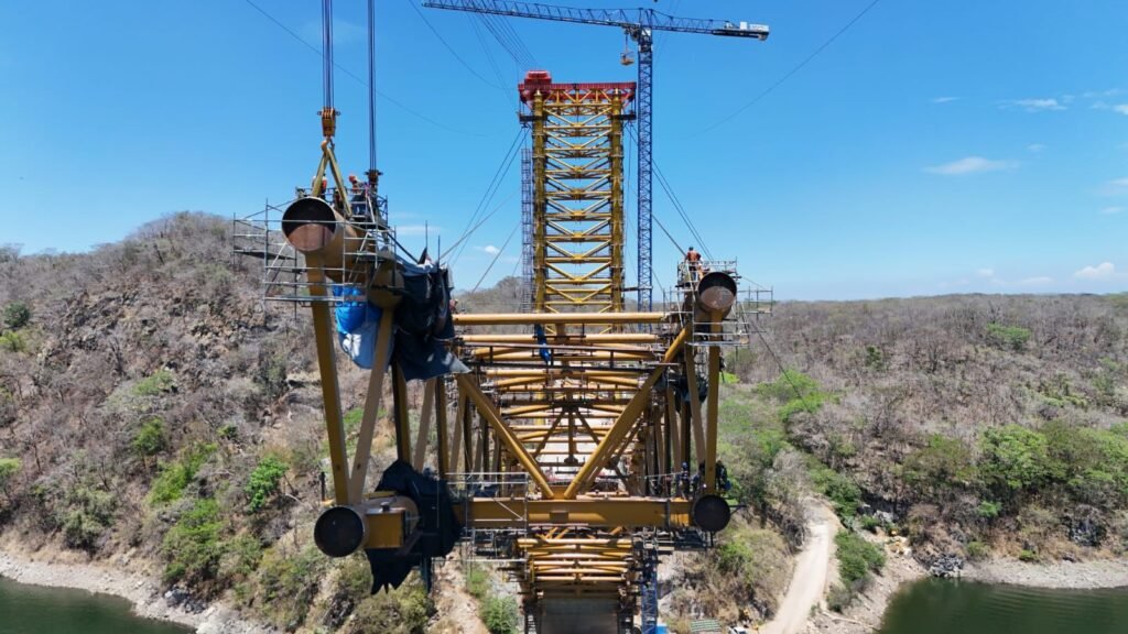 El puente, con una inversión total de mil 382 millones de pesos, tendrá más dedos kilómetros de longitud (405 metros de estructura y 1.7 km de accesos), eincluye la instalación de 27 dovelas con un peso de 2 mil 730 toneladas.