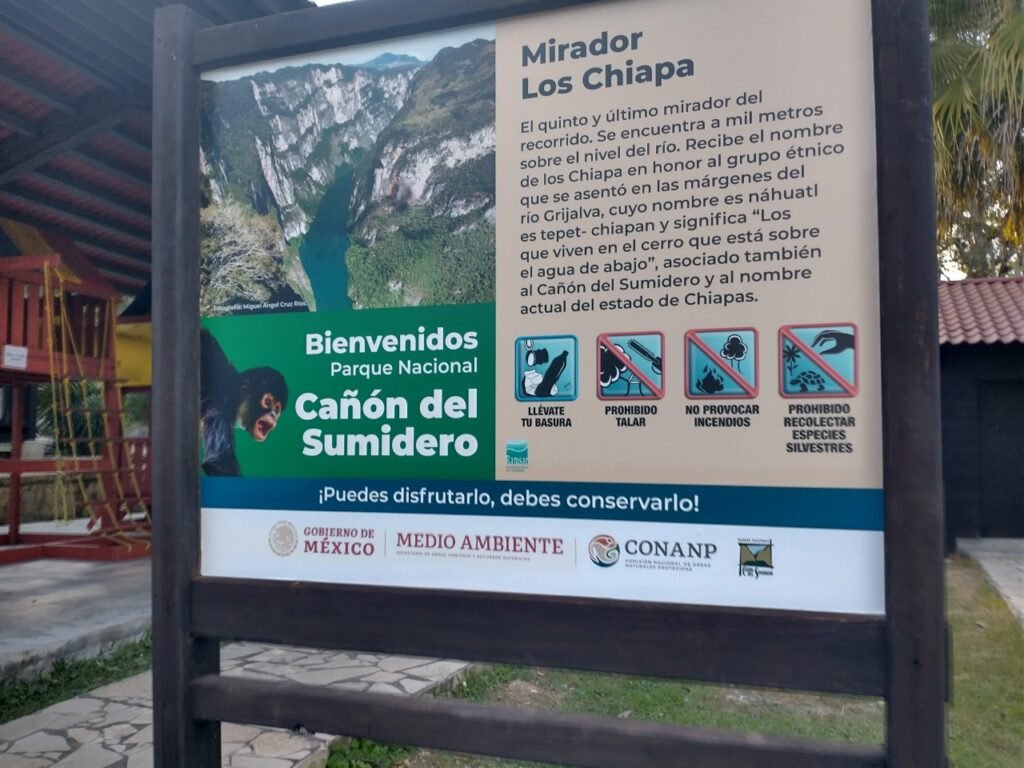 Las ANP de Chiapas que se benefician con este apoyo para la sustitución de señales son los Parques Nacionales Cañón del Sumidero, Palenque y Lagunas de Montebello, Las Reservas de Biosfera La Sepultura, La Encrucijada, Volcán Tacaná, Selva El Ocote, el Triunfo, Montes Azules y Lacantún.