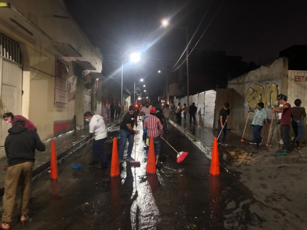 Tapachula, Chiapas.- Con la intención de mantener entornos saludables para evitar contagios por Covid-19 y sus variantes, el Ayuntamiento de Tapachula realizó labores de limpieza en la calle 10ª. avenida Norte entre 1ª. y 7ª. calle Poniente.