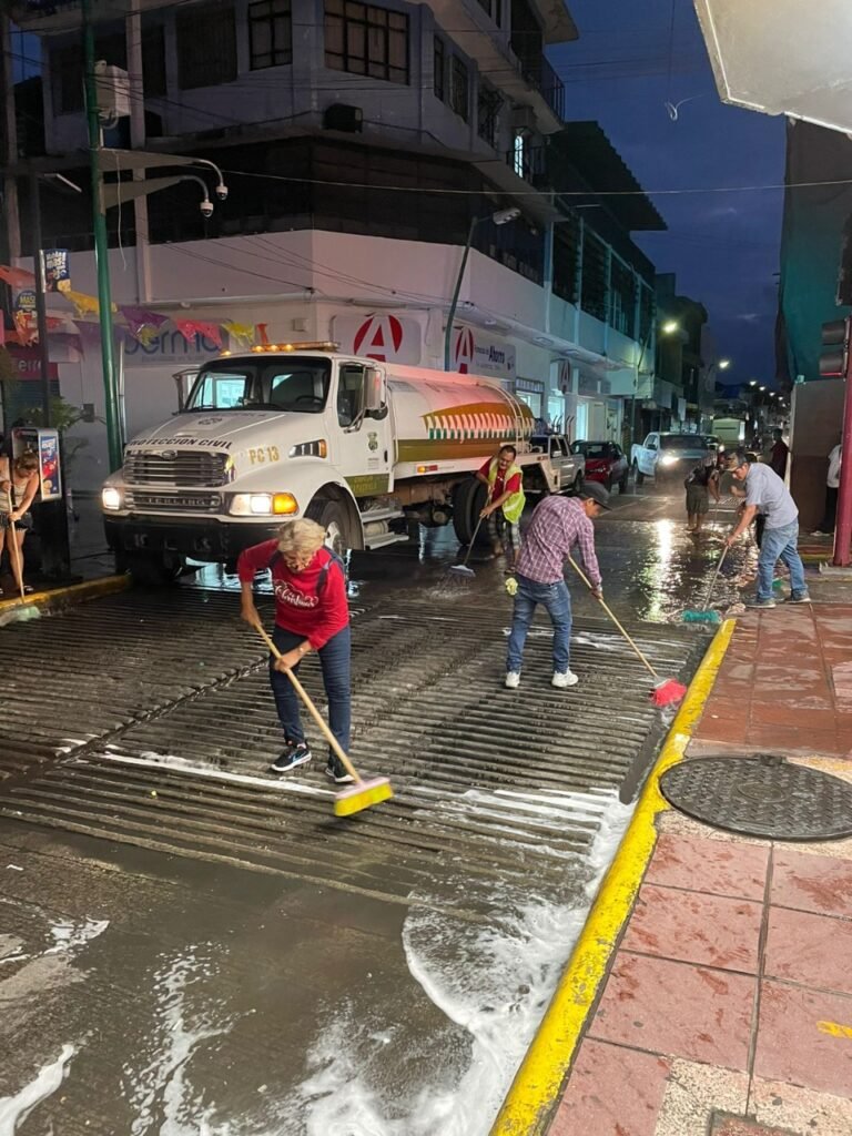 Personal de las secretarías de Servicios Públicos, Desarrollo Urbano y Ecología, Seguridad Pública y Protección Ciudadana, Vialidad y Protección Civil, participaron en estas acciones instruidas por la alcaldesa Rosa Irene Urbina Castañeda, al ser ese espacio de alta concentración de personas.