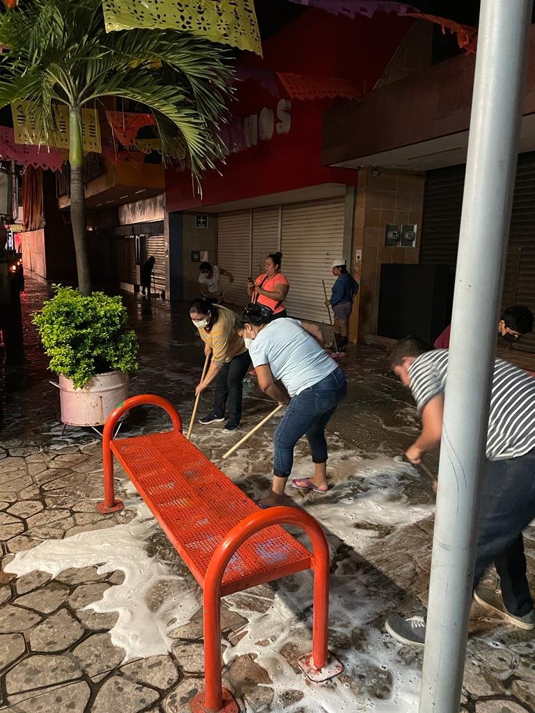 El titular de Servicios Públicos José Arturo Rojas Cárdenas, explicó que comerciantes de esa zona se han sumado a las actividades que tienen como objetivo mantener los espacios limpios y sanitizados, en beneficio de todos los ciudadanos.