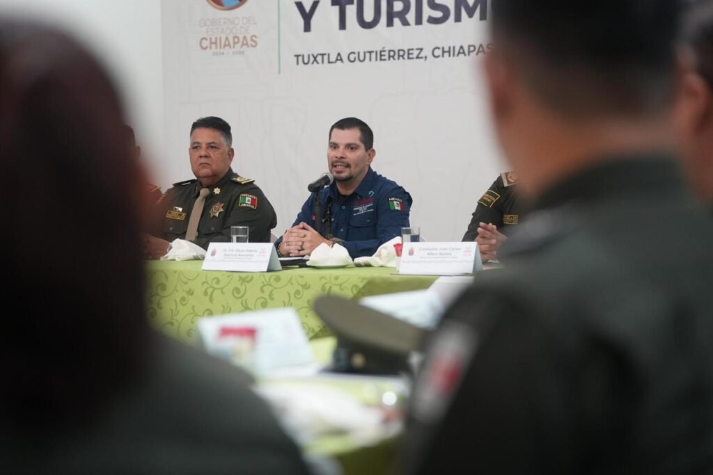 “Felicito a todos los que hoy obtuvieron su nombramiento, es un gran honor, es un gran orgullo, pero también una gran responsabilidad. Hoy y todos los días, desde la Mesa de Paz para Chiapas, que encabeza el gobernador del estado, Eduardo Ramírez Aguilar, estamos haciendo la estrategia de seguridad, y ustedes son eslabón importante para la seguridad, ustedes prácticamente están en los 124 municipios”, señaló Oscar Alberto Aparicio Avendaño, titular de la Secretaría de Seguridad del Pueblo (SSP).