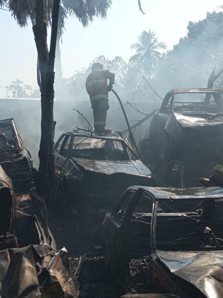 Tapachula, Chiapas.- Un incendio que se registró en el corralón de vehículos “Constantino” y que afectó unas 30 unidades, fue controlado con la intervención de personal de la Dirección de Protección Civil Municipal y el Cuerpo de Bomberos de Tapachula.