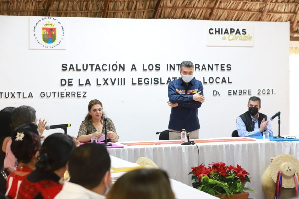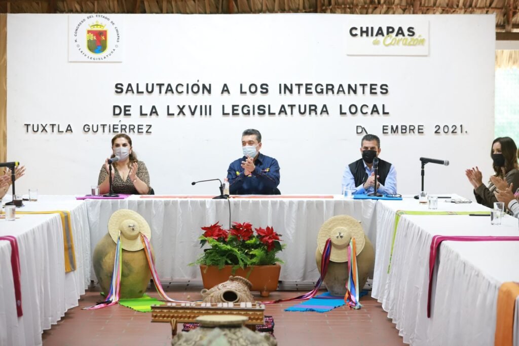 Durante un encuentro de salutación con diputadas y diputados que conforman la LXVIII Legislatura del Congreso del Estado, el gobernador Rutilio Escandón Cadenas convocó a caminar juntos para empujar hacia la misma dirección, con el propósito de contribuir en la búsqueda del bienestar, la prosperidad y el crecimiento del índice de desarrollo humano de los pueblos y las comunidades de Chiapas.