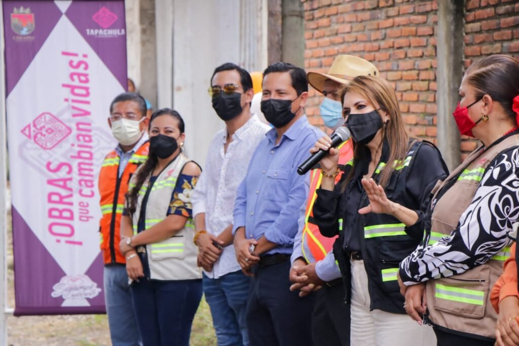 Tapachula, Chiapas.- Al poner en marcha la construcción de la pavimentación mixta de calles en la colonia Los Lirios, la presidenta municipal de Tapachula, Rosa Irene Urbina Castañeda, destacó que la suma de esfuerzos entre pueblo y gobierno genera obras de beneficio social que buscan el progreso, desarrollo y felicidad de los tapachultecos.