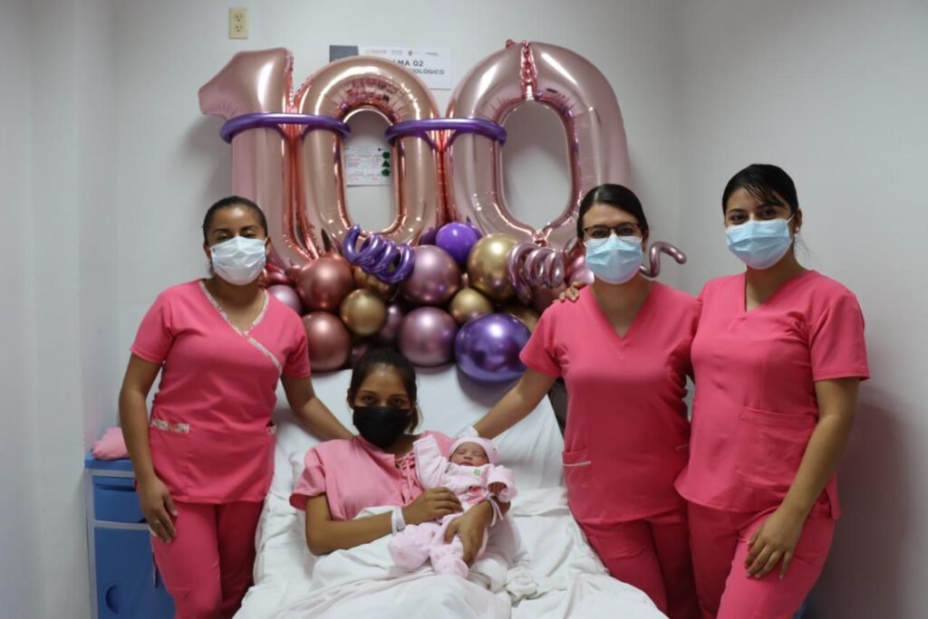 El funcionario estatal dio a conocer que el parto número 100 en esta unidad de salud se registró a la 01:25 de la mañana de este miércoles. Se trata de una niña con un peso de tres kilos 540 gramos y 47 centímetros de talla, quien goza de excelente salud y es alimentada con el seno materno.