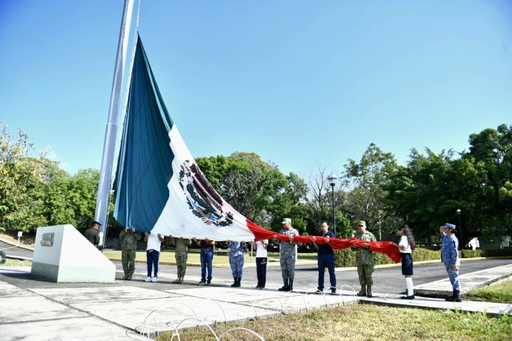 Tapachula, Chiapas. — En el marco del Día de la Bandera, el presidente municipal de Tapachula, Yamil Melgar Bravo, encabezó la conmemoración oficial desde el Cuartel General de la 36ª Zona Militar, ceremonia que estuvo a cargo del General de Brigada de Estado Mayor Javier Guzmán Alvarado, Comandante de la Zona Militar, donde se rindieron honores al Lábaro Patrio como símbolo de unidad e identidad nacional.