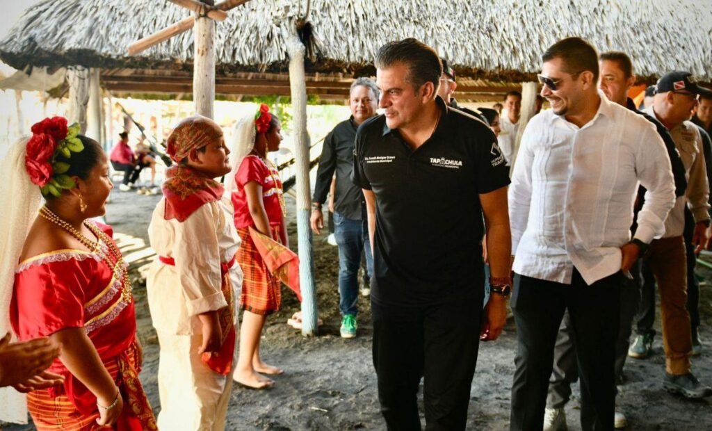 20 de noviembre 2025, Tapachula, Chiapas.- El presidente municipal de Tapachula, Yamil Melgar Bravo y el secretario de Seguridad del Pueblo del estado de Chiapas, Óscar Alberto Aparicio Avendaño, sostuvieron un encuentro con palaperos de Puerto Madero como parte de las acciones del programa Tapachula Segura.