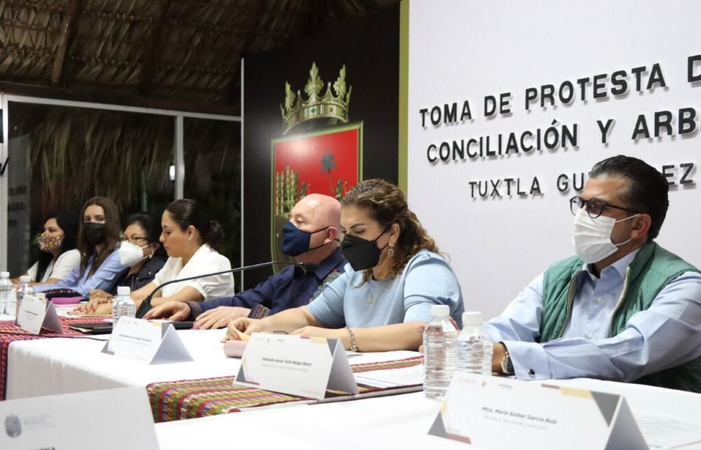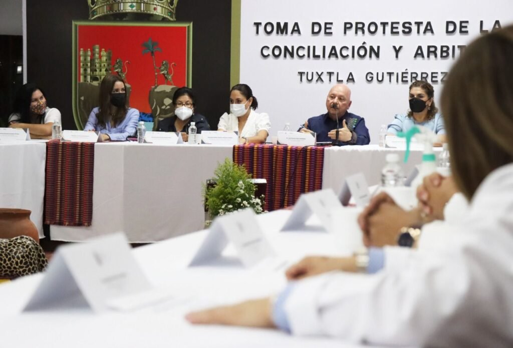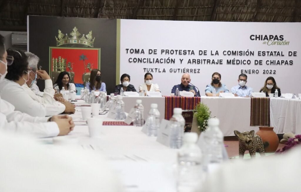 Tuxtla Gutiérrez, Chiapas; 13 de enero del 2022.- El secretario de Salud del estado, doctor Pepe Cruz, atestiguó la toma de protesta de los nuevos integrantes de la Comisión Estatal de Conciliación y Arbitraje Médico (Cecam), organismo encargado de conocer y resolver de manera conciliatoria las quejas en contra de actos, hechos u omisiones que se susciten entre usuarios y prestadores de asistencia médica, particulares o públicos.