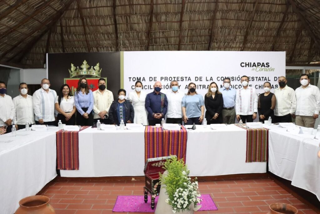 La presidenta de la Mesa Directiva del Congreso del Estado, María de los Ángeles Trejo Huerta, fue la encargada de tomar protesta a quienes estarán al frente de la Cecam: Ariosto Coutiño Niño como comisionado; Jorge Penagos Avendaño, subcomisionado; y como consejeros, Arturo Piña Flores, Jesús Escobar Molina, Carlos Roblero Rivera, Stalin Moisés de las Cruz Gutiérrez, Patricia Victoria Herrera, Jaime José Gutiérrez Gómez, Francisco Ramos Narváez y Enrique Solís Coutiño.