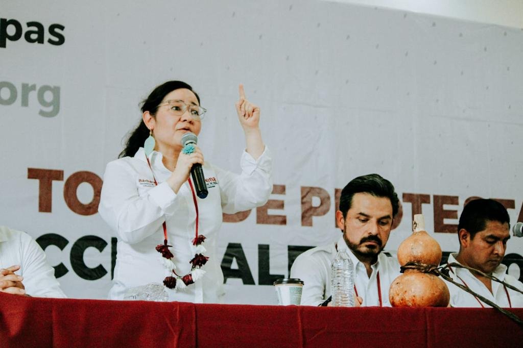 En el marco del Plan Nacional de Organización, la Secretaria General del Comité Ejecutivo Nacional (CEN) de Movimiento Regeneración Nacional (Morena), senadora Citlalli Hernández Mora, efectuó este domingo la toma de protesta distrital de los integrantes de 42 comités seccionales de protagonistas del cambio verdadero en defensa de la 4T, mismos que representan 183 casillas de los municipios de Las Margaritas, Teopisca y Oxchuc.