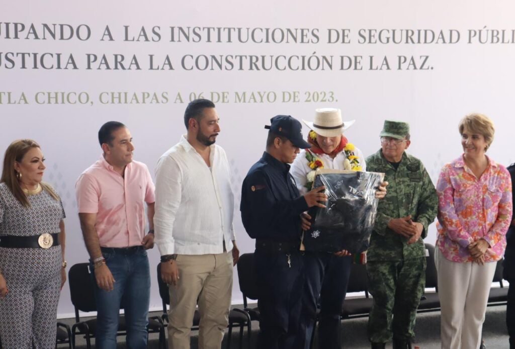 El Presidente Municipal de Tuxtla Chico Julio Enrique Gamboa Altúzar enfatizó además que con estrategias y la sinergia de trabajo entre los tres órdenes de gobierno las familias Tuxtlachiquenses están seguras, “Gracias al trabajo coordinado y al apoyo del Gobernador del Estado, se entregaron uniformes y equipamiento para las fuerzas policiales lo que aportará al reforzamiento de las acciones a favor de la paz, y tranquilidad de la ciudadanía.”