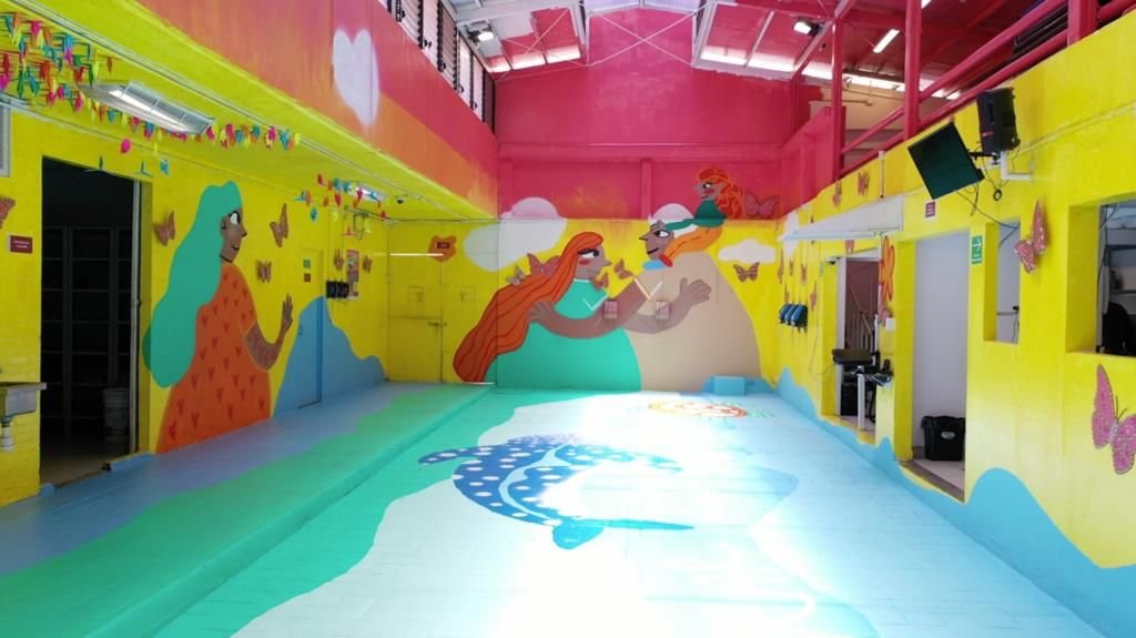 El mural es obra de la ilustradora Siulam Corona, quien bajo el pseudónimo Pez Felino ha participado en diversos festivales internacionales de jóvenes talentos y colabora al lado de organizaciones defensoras de derechos humanos.