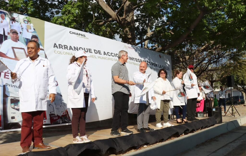 Tuxtla Gutiérrez, Chiapas; 21 de marzo de 2023.- Con la finalidad de detectar en etapas tempranas diversas enfermedades en la población más vulnerable, se creó el modelo de atención móvil para acercar los servicios básicos y especializados como son los cinco Convoyes de la Salud, los cuales recorren todo el estado y hoy arribaron a colonias de Tuxtla Gutiérrez para beneficiar a más chiapanecas y chiapanecos, resaltó el secretario de Salud del estado, doctor Pepe Cruz, al dar el banderazo de inicio a las acciones integrales en la colonia Las Torres.