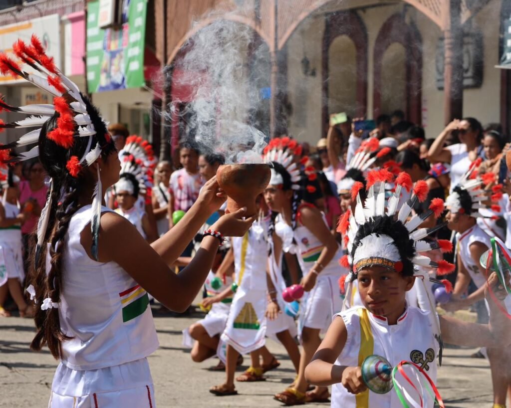 Estudiantes también representaron la historia de Izapa, como una muestra cultura, raíces y arraigo, la población aplaudió la participación de cada institución educativa y de cada alumno.