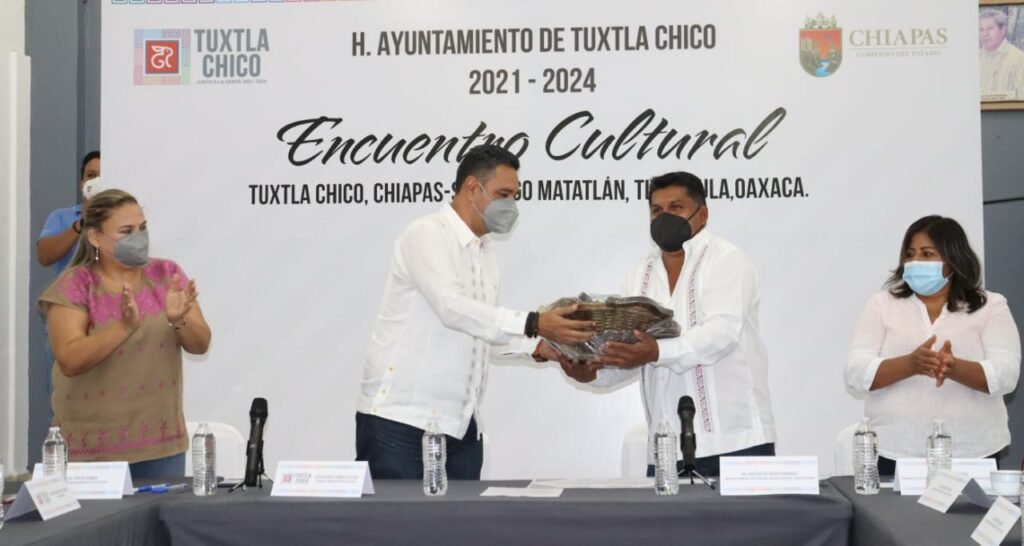 Tuxtla Chico, Chiapas a 01 de febrero. En el marco de un encuentro cultural, el alcalde de Tuxtla Chico, Julio Enrique Gamboa Altúzar junto al Cabildo nombraron visitante distinguido al presidente Municipal de Santiago Matatlán, Tlacolula, Oaxaca, Juan Carlitos Méndez Hernández.