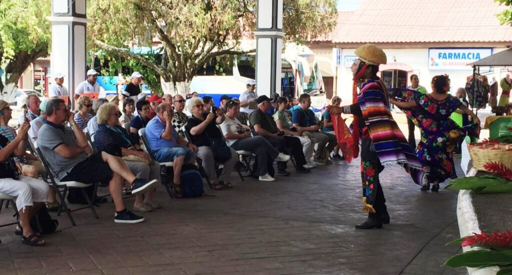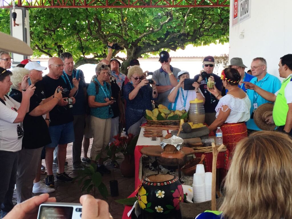 Tuxtla Chico, Chiapas a 14 de marzo. Con música y bailes folclóricos, Tuxtla Chico recibió la mañana de este martes a turistas del crucero Amera de la línea naviera Phoenix Reisen. Los cruceristas realizaron diversos recorridos turísticos, entre ellos, conocer el proceso del chocolate artesanal.