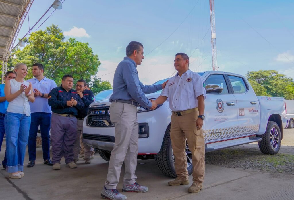 El delegado regional Soconusco X de Protección Civil, Joaquín Ernesto Montes Molina, resaltó que la entrega de nuevas unidades fortalece la capacidad operativa y de respuesta ante situaciones de emergencia, al mismo tiempo que permite brindar atención oportuna y eficiente a la ciudadanía.