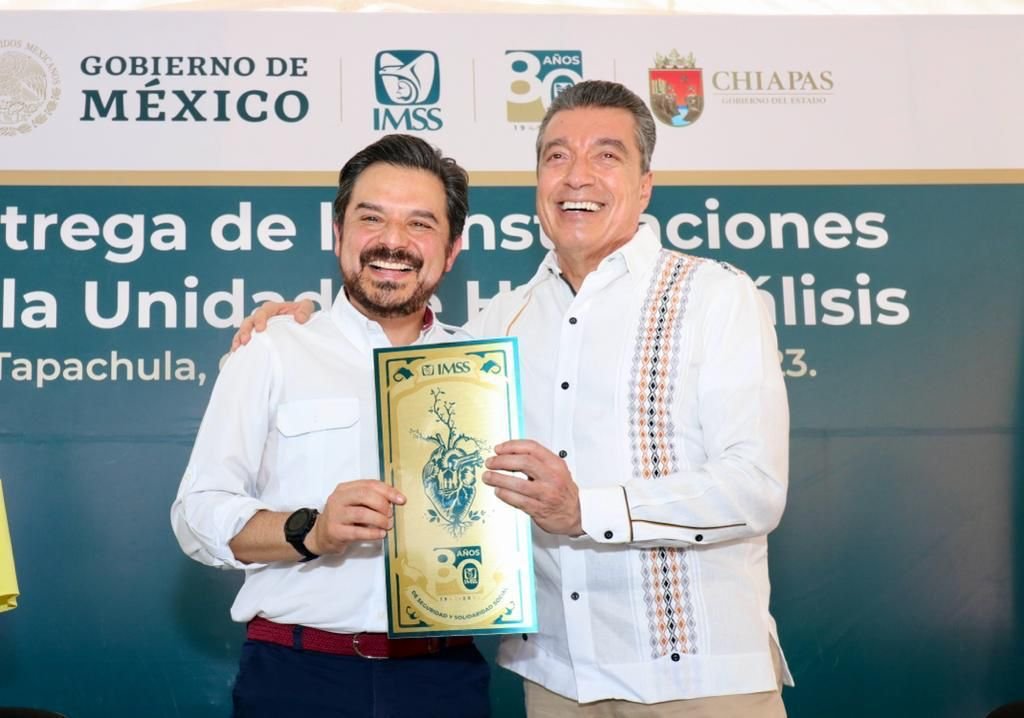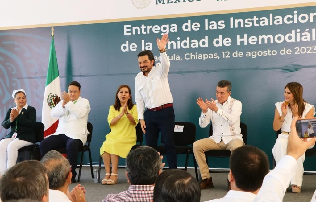 Al inaugurar la Unidad de Hemodiálisis del IMSS en Tapachula, el gobernador de Chiapas, Rutilio Escandón Cadenas, reconoció a Zoé Robledo por cumplir con la instrucción del presidente de la República, Andrés Manuel López Obrador, de recuperar y dar vida al Seguro Social.